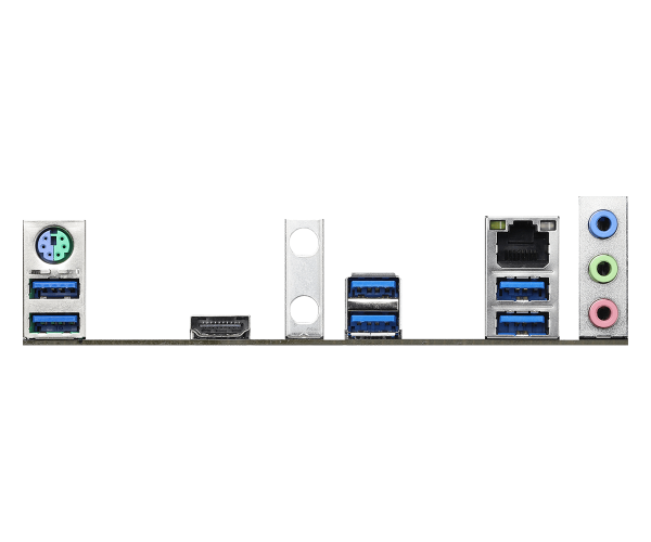 | Konektori na zadnjoj strani | – 2 x Antenna Ports – 1 x PS/2 Mouse/Keyboard Port – 1 x HDMI Port – 6 x USB 3.2 Gen1 Ports (podržava ESD Protection) – 1 x RJ-45 LAN Port sa LED (ACT/LINK LED i SPEED LED) – HD Audio Jacks: Line in / Front Speaker / Microphone |
