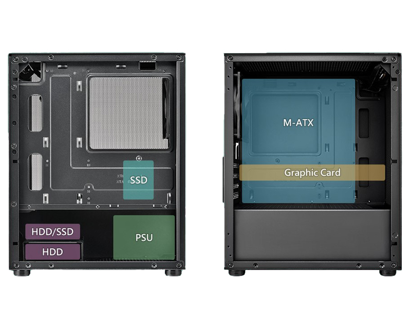 Osnovne karakteristike – Format kućišta: Small Tower Podržani formati matičnih ploča: microATX,Mini-ITX Napajanje – Snaga napajanja: Bez napajanja Unutrašnja ležišta – Unutrašnja 3.5″ ležišta: 2 Unutrašnja 2.5″ ležišta: 1 Priključci napred – USB 3.0: 1 USB 2.0: 2 Ležišta za ventilatore – Poleđina: 1x 120mm Donja strana: 2x120mm Gornja strana: 2x120mm Ugrađeni ventilatori – Poleđina: 1x120mm Ležišta za hladnjake – Poleđina: 120mm Donja strana: 120mm Gornja strana: 120mm Kompatibilnost – Maksimalni broj slotova: 4 Maksimalna visina procesorskog hladnjaka: 160mm Maksimalna dužina grafičke karte: 285mm Fizičke karakteristike – Dimenzije: 382mm x 350mm x 200mm Materijal: Metal Masa: 3.7kg Boja: Crna Reklamacioni period – Reklamacioni period: 24 meseca